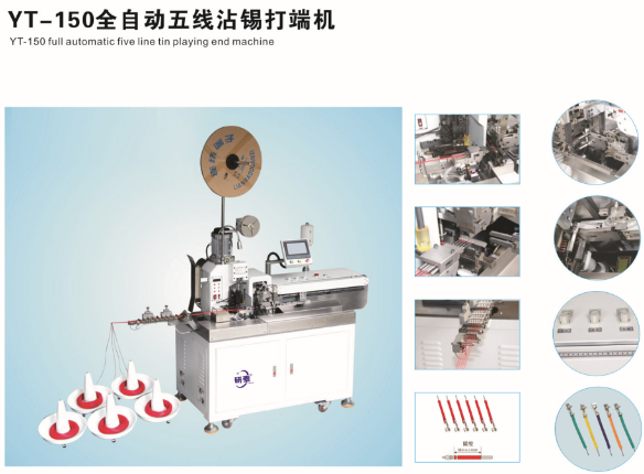 全自動雙頭穿護套端子機、全自動雙頭穿熱縮管端子機、全自動銅帶壓接端子機、全自動雙頭端子機、全自動排線端子機、全自動沾錫打端機、全自動打端插殼機、新能源全自動雙頭穿熱縮管散粒端子機、新能源全自動雙壓單穿激光打號碼管端子機、新能源大平方穿號碼管端子機。